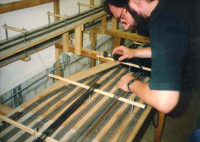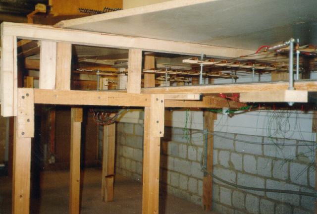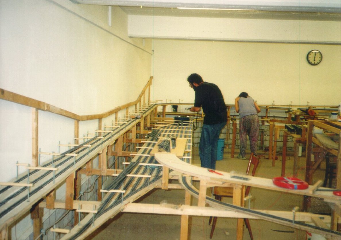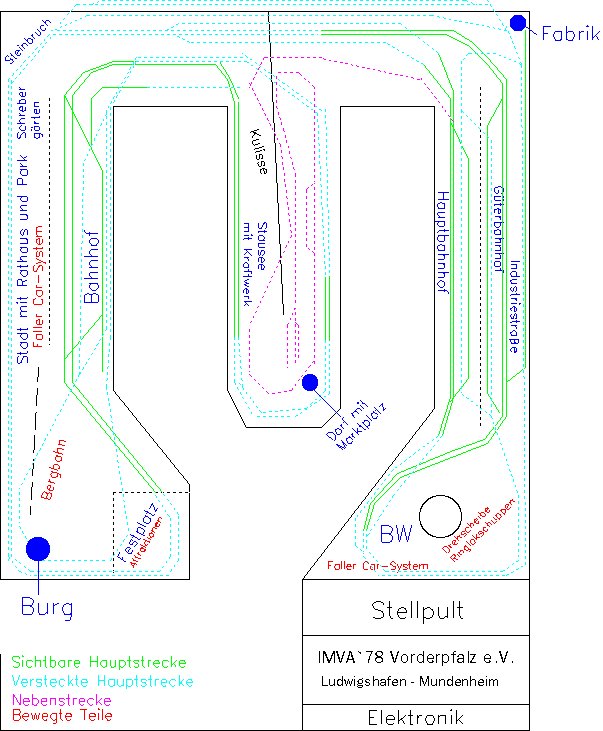 Damit auch alles wie "Echt" funktioniert wurden ca. 20.000 Meter Kabel verlegt. Diese wurden auf 27 Lötverteiler mit ca. 5.000 Lötstellen aufgeschaltet. Insgesamt waren für die Modelleisenbahnanlage 129 Fahrstraßen und 115 Blockabschnitte eingerichtet. 7 Einzelnetzteile versorgten die Modellanlage mit Strom, der von 230 Volt Wechselspannung auf 20 Volt Gleichspannung für den Fahrstrom und die Magnetartikel (Weichen) umgewandelt wurde.