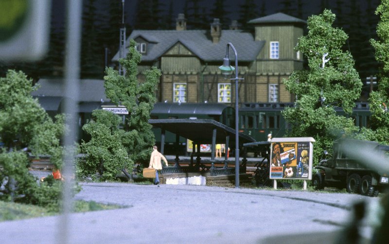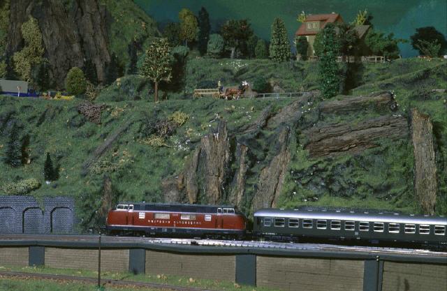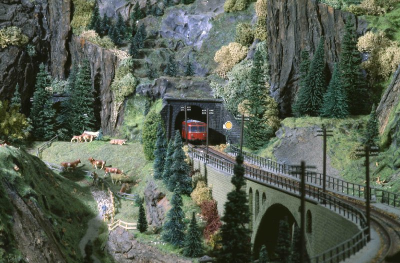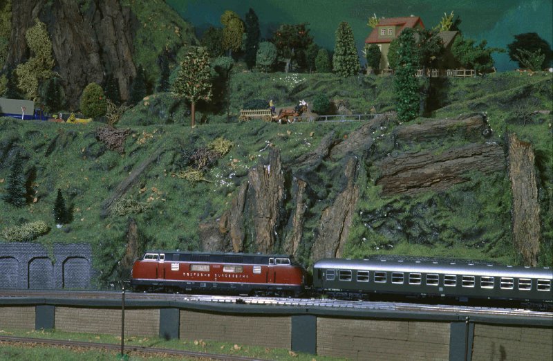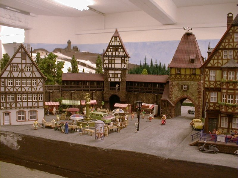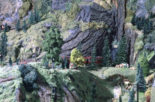 Auf einer Fläche von 50 qm; wurde die Natur im internationalen Modelleisenbahnmaßstab 1:87 in der Epoche III der Bahngeschichte im Zeitraum 1945 - 1970 gestaltet. So waren ca. 600 Meter Schienen auf 79.000 Schwellen verlegt, was in der Wirklichkeit einer Strecke von 53 Kilometern entspricht. Ca. 90 Weichen verteilten die Züge auf die verschiedenen Bahnhöfe. Auf zwei Schattenbahnhöfen mit insgesamt 15 Gleisen konnten die verschiedensten Zugzusammenstellungen bereit gehalten werden.